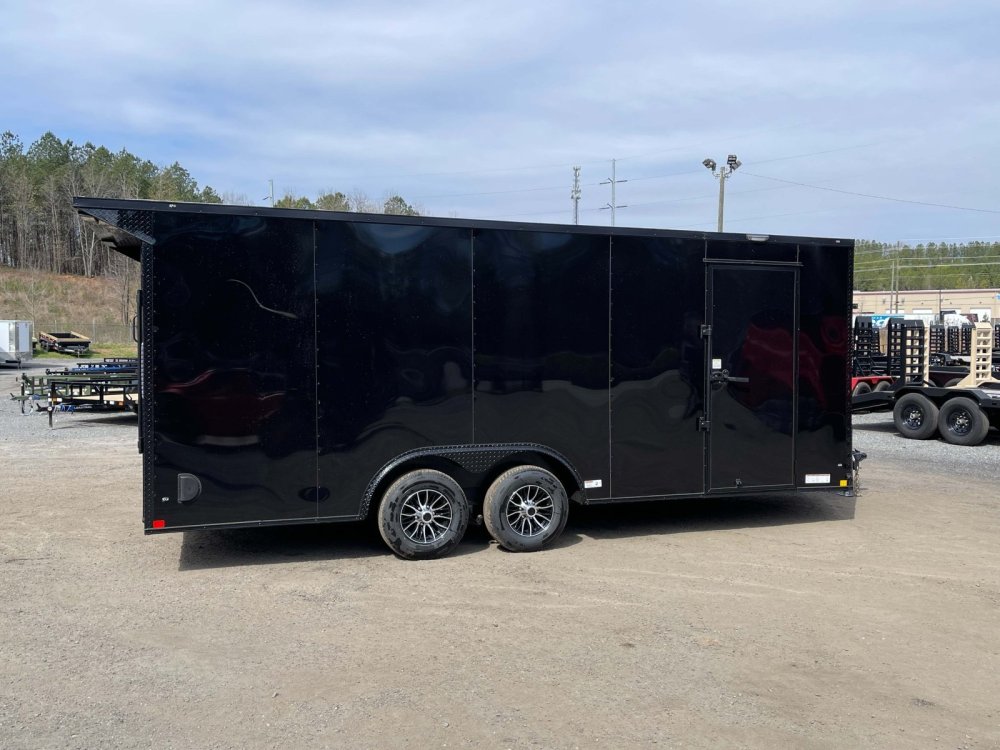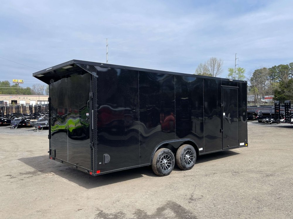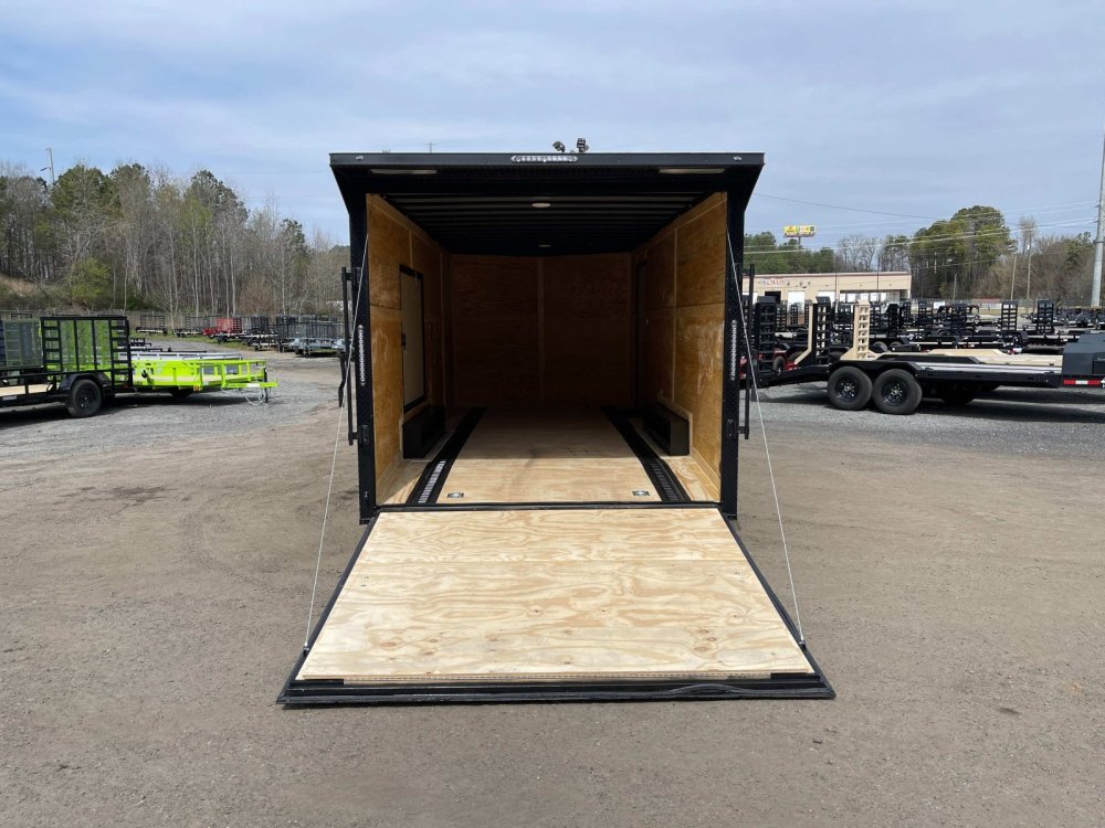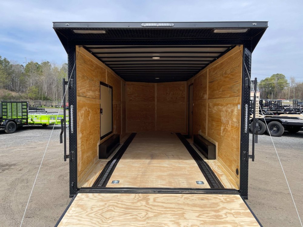 Features: Ramp Door w/Spring Assist, Upgraded R/H RV Entry Door, Super Premium .080 Polycore Skin, Rear Wing Spoiler & 40-ft of Floor E-Track, 2-5/16-in A-Frame Cast Coupler